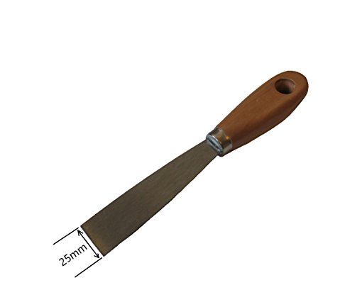 Edelstahl Spachtel Redlich zugunsten Gipskarton, Redlich Streichmesser Aufmachung, Klebemontage, ergonomischer Holzgriff, 25mm