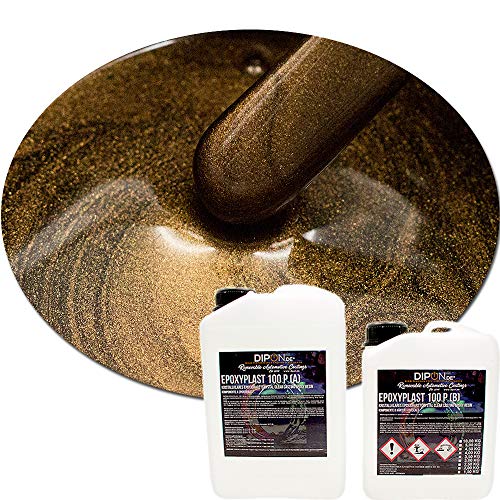 EPOXYPLAST 100 P BRONZE BROWN METALLIC Pearl KIT Kreiren Sie Ihre eigenen Metallicböden, -Aufziehen- oder -Tische! LIEFERUMFANG: EPOXYPLAST 100 P Komponente A + Komponente B im angezeigten Gesamtgewicht (Bei 0,75 KG entspricht dies 0,5 KG A + 0,25 KG B = 0,75 KG) + die jeweilige Summe Pigment TIPP! Als Zugabe DIPON Alcohol Pearls für Kraterlandschaften nutzen! BESCHREIBUNG: DIPON EpoxyPlast 100 P ist ein Durch und durch einsetzbares, hochwertige, niedrigviskoses (1,09 g/cm³) Epoxidharz für unterschiedlichste Anwendungen. Qualifiziert u.a. für die Herstellung von Rivertischen, Fuß- & Garagenböden, Terrarium-, Teich-, Aquariumbau sowie u.a. für die Reparatur und Herstellung besonders leichter und Exotischer Formteilen, z.B. mittels Vakuum Infusion Verfahren, jedweder GFK, Aramid, Carbon für KFZ, Kabine- und Boots-, und Schiffsbau. Alias für den Modellbau exzellent einsetzbar. ANWENDUNG: Epoxidharz A + Epoxidharz Härter B im Aufsehen von 2:1 nach Gewicht vermengen und ca. 4-5 min. mischen. Im Anschluss Effektpigmente dazumischen und ca. 2-3 min. rühren. Fertig. Veranstalten Sie Ihre individuelle Perlglanz- & Metallicbeschichtung einfach wie zu keiner Zeit zuvor! DATEN: Umgebungstemperatur: mind. 10°C (Empfohlene Temperatur 18-21°C) Empfohlene Materialtemperatur: mind. 15°C, empfohlen 20°C Mischungsverhältnis 2:1 nach Gewicht, keine Volumenmischung. Empfohlene Mindestmischmenge: 100 Gramm A (Epoxidharz) + 50 Gramm B (Härter) Mischdauer: 4-5 Minuten und nach anschließendes Umtopfen ca. zwei – drei Minuten Maximale Mischgeschwindigkeit: 300 U/min. Maximale Gießhöhe bei 20°C: Volumenabhängig, empfohlen max. 10 mm, bei kleinen Silikonformen bis zu 40 mm Maximales Volumen je qm² bei 10 mm Gießhöhe: ca. 2,5 kg bei 20°C Aushärtungszeit Schicht 1 – Schicht 2: Empfohlen 24 Stunden bei 20°C
