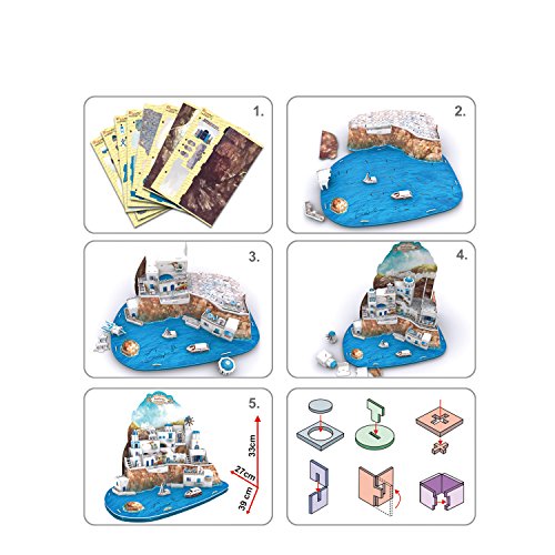 Wunderschönes 3D Puzzle der Santorini Inseln in Griechenland. Länge: 39cm x Breite: 27 cm x Höhe: 33 cm 129 Teile Spartanisch zusammenbaubar, ohne Schere ansonsten Kleber mit Bezug auf einzigartiges Stecksystem. Nicht sondern Kinder darunter 3 Jahren sinnvoll auf Grund der Tatsache verschluckbarer Kleinteile!
