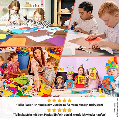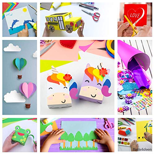 SEHR GROßE FARBVIELFALT: Dank der 10 intensiven, unterschiedlichen Farbtöne, ist das Papier für jedweder möglichen Bastel- und Gestaltungsarbeiten verwendbar. Ob ihr Scrapbooking betreibt, kleine Figuren bastelt oder eigene Einladungskarten macht, all dies ist möglich. Die Vorder- und Abseite haben beide dieselbe, hohe Farb-Intensität, sodass ihr z. B. bei Collagen oder Fotoalben immer ein schönes Gesamtbild habt.