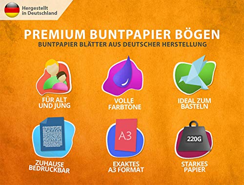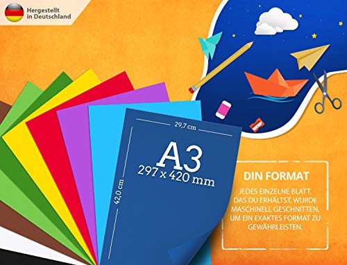 50 Blatt Buntpapier TONKARTON DIN A3 â 220 g Set 10 Farben â Bastelpapier Dick, Farbige Blätter â Pappe für Kinder, DIY Bogen, Cardstock Zubehör – BLAUER ENGEL & PEFC Zertifizierung – MADE IN GERMANY