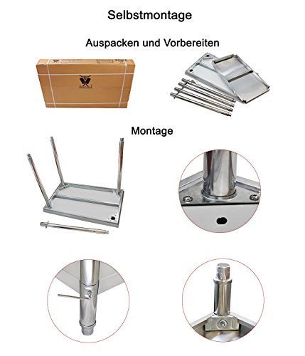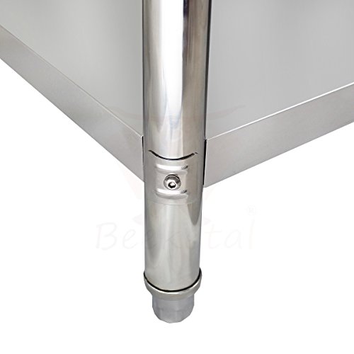 Beeketal Edelstahl Arbeitstisch BA120 mit 120 x 60 cm Arbeitsfläche und justierbaren Sechskant Stellfüßen