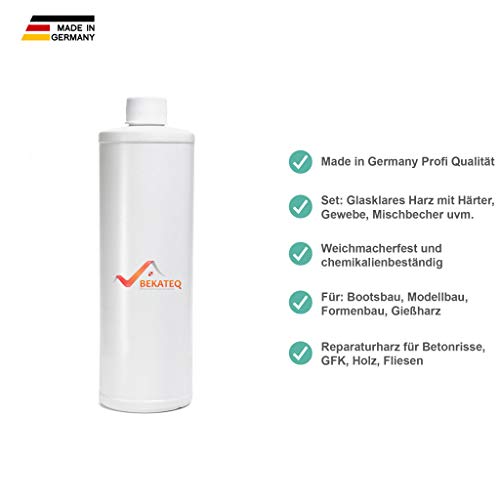 Epoxidharz mit Härter, GFK Reparatur Set für Boot, Auto, Modellbau, Fahrzeugbau – 0,6KG mit Rovinggewebe Glasgewebe 160g/qm – BEKATEQ BK-170EP