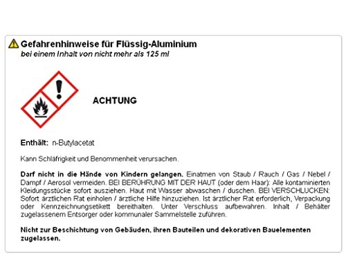 Gefahrenhinweise für Flüssig-Aluminium bei einem Inhalt von nicht mehr als 125 ml