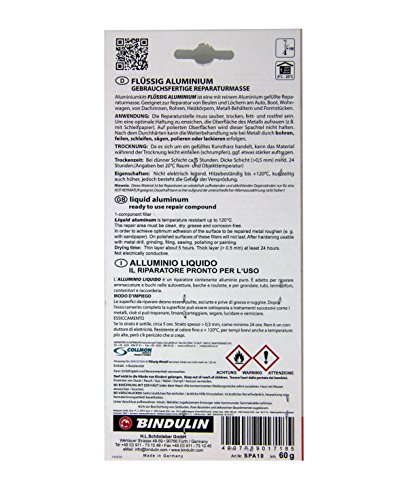 Flüssig Aluminium 60g – gebrauchsfertige Reparaturmasse aus Kunstharzspachtel mit Aluminium – geeignet für Auto KFZ Wassersport Marine Alu-Felgen Yacht Modellbau – Markenware von Bindulin