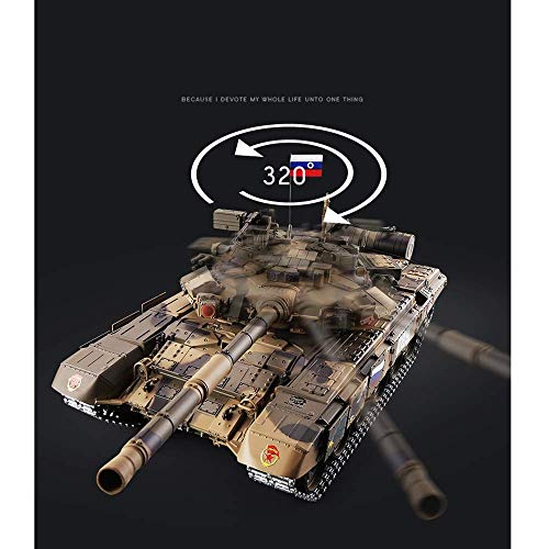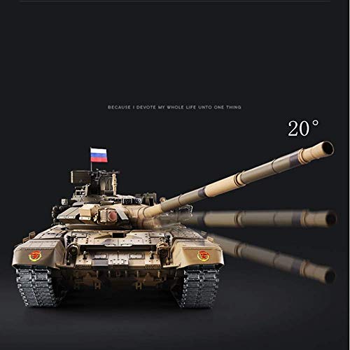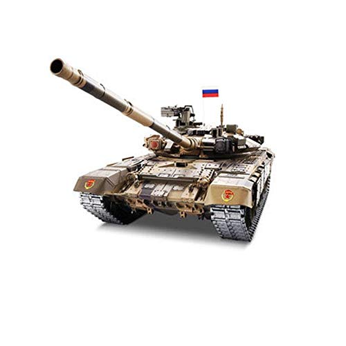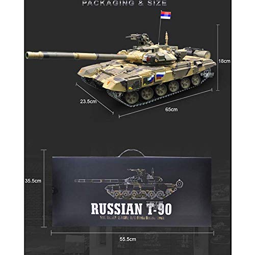 Ferngesteuerte russische T-90-Hauptschlacht im Modellmaßstab im Maßstab 1:16 im großen Maßstab, Wiederherstellung des Aussehens echter Panzer, Laufstrecke, Straßenradaufhängungssystem, Revolverdrehung, Aufhebung des Waffenrohrs, Beleuchtung, Rauch , Simulation Soundeffekt 2.4G Fernbedienungssystem mit Rückstoßeffekt, kann Rauchschalter und Lautstärke fernsteuern.