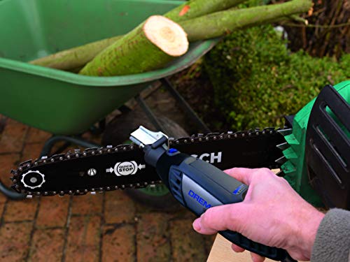 Erwecke eine stumpfe, langsame Kettensäge mit deinem Dremel Multifunktionswerkzeug und dem Kettensägenschärfer nochmal zum Leben. Hauche deiner Kettensäge neues Leben ein, indem du einfach den Winkelvorsatz an deinem Dremel Multifunktionswerkzeug anbringst und eines der vier enthaltenen Schärf-/Schleifstein-Zubehöre nach Maß zu deiner Kettensäge verwendest. Weitaus schneller und bequemer denn traditionelle Methoden.