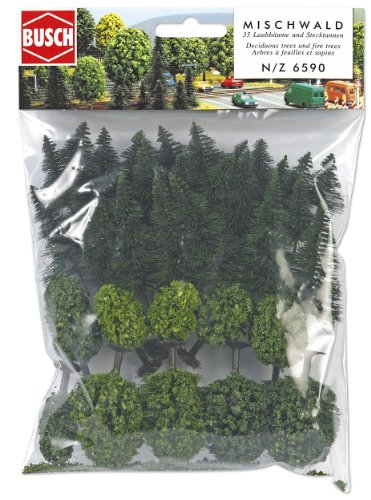 Mit 35 Bäumen: 10 Laubbäume 35-55 mm auch 25 Tannen 30-50 mm prägnant.