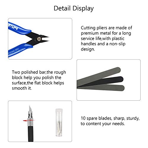 Anwendung: Modellbau Werkzeug eignet sich für Anfänger und Fortgeschrittene. Sie können es verwenden, um Spielzeug, Autos, Roboter, Cartoons, Holzhandwerk und andere Handarbeiten zu machen. Im Rahmen für Gundam, Bendai, Revell, Panzer, Kiste, Automodell