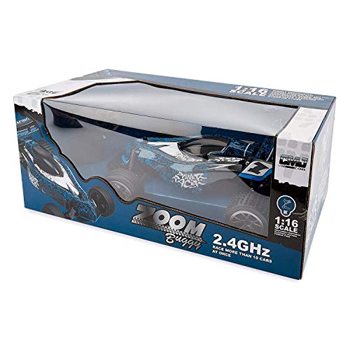 Der Zoom Buggy Fernsteuerungsauto im Maßstab 1:16 (ca. 29 cm) ist sofort einsatzbereit. Fügen Sie einfach 6 x AA Batterien 4 für das Auto und 2 für den Controller (nicht im Lieferumfang enthalten). Mit vollem Funktionsumfang einschließlich vorwärts, rückwärts, stopp, links und rechts.