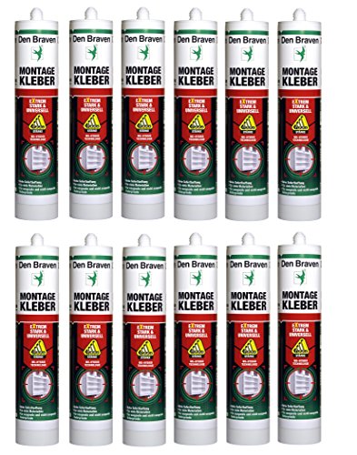 Produktbeschreibung Vergessen Sie doppelseitiges Klebeband! Der hochwertige Den Braven Montagekleber Extrem Ultrakrass & Universell ist ein hochwertiger Einkomponenten Adhesiv auf Basis der Hybridtechnologie mit hoher Anfangshaftung für extrem starke und universelle Verklebungen, der einfach und schnell mit einer Kartuschenpresse verarbeitet werden kann. Dank seiner speziellen Formulierung auf nahezu aus Materialien geschmackvoll, können mit diesem luftfeuchtigkeitsaushärtenden Superkleber unzählige Montagearbeiten im Innen- und Außenbereich schnell und ohne aufwändige Vorbereitung erledigt werden. Nach der Aushärtung besitzt dieser weiße Reparaturkleber eine extrem starke Klebkraft und haftet ausgezeichnet auf vielen saugenden und nicht saugenden Untergründen wie Mauerwerk, Holz, Dach- und Tonziegel, sowie Glas, Metall, Emaille, Hart-PVC, Polycarbonat, PU und vielen weiteren Materialien. Zudem kann er bei Bedarf nach der Aushärtung problemlos mit Farben auf Wasserbasis oder aka zweikomponentigen Farben überstrichen werden. Dank seiner hervorragenden Temperaturbeständigkeit von -40 bis +100°C deckt er wie ein Industriekleber einen sehr großen Anwendungsbereich ab. Dieser Montagekleber ist ein Produkt „Made in Germany“ und entspricht modernsten ökologischen Standards. Nicht ausgehärtetes Material kann mit Den Braven Universal Cleaning Wipes entfernt werden. Weitere nützliche Informationen erhalten Sie auf unseren technischen Datenblättern. Produkteigenschaften