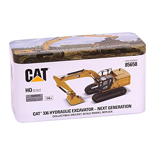 Offiziell lizenziertes CAT-Produkt: detailgetreuer gelber CAT Raupenbagger 336 Next Gen (mit Hex-Design Logo) im Maßstab 1:87, H0 Rangfolge, für Sammler und Modelleisenbahn sinnvoll