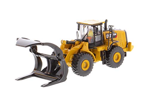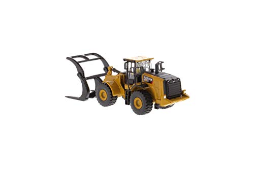 Offiziell lizenziertes CAT-Produkt: detailgetreuer gelber CAT Radlader 972M mit Holzgreifer im Maßstab 1:87, H0 Folge, für Sammler und Modelleisenbahn brauchbar