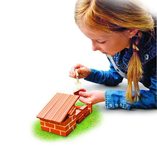 Ein schickes kleines Einfamilienhaus entsteht allesamt diesem Set. Die einfache Mauerstruktur und das schräge Dach allesamt Wellenplatten sind leicht umzusetzen und versprechen schnelle Erfolge für Anfänger in der Maurerkunst.Was auch immer was für den Bau nötig ist, ist im Lieferumfang enthalten: Maurerkelle, Mörtel, Mörtelschale, Ziegelsteine und eine ausführliche Bauanleitung.