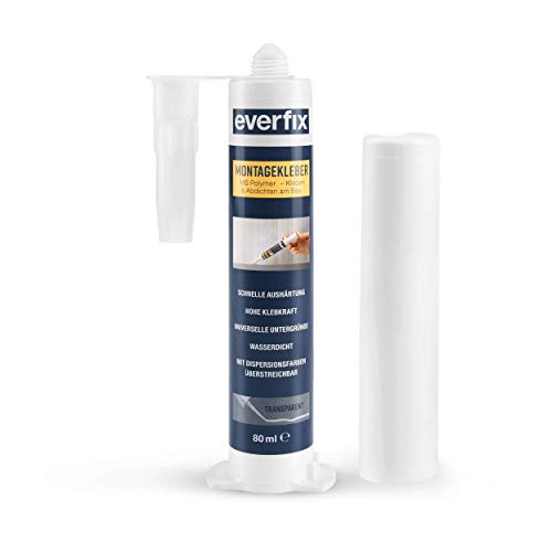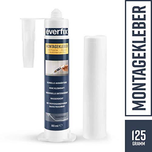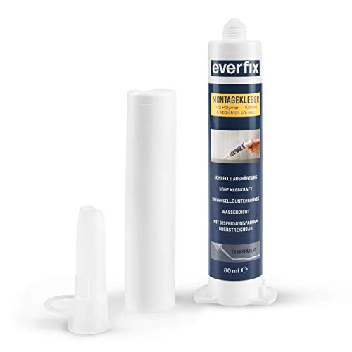 Einfach und Schnell – Der EVERFIX Montage Leim überzeigt durch einfache Anwendung, schnelle Aushärtung und extrem hohe Klebkraft für kraftvolle Befestigungen im Innenbereich und Aussenbereich.