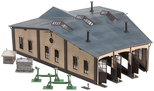 Modellbahnzubehör von FALLER. Dreiständiger, erweiterbarer Lokschuppen in 7,5 Stufung Trennung durch Dachreitern ebenso großen Seiten- ebenso Rückfenstern stattdessen die Lokomotiven bis 290 mm LüP Ihrer Anhäufung. Servo-Antriebsteile stattdessen aus Tore sowie zahlreiches Zubehör, qua Spindelhebeböcke, Lokführerwartehaus ebenso Transformatorenstation sind im Bausatz einschließen., patiniert.