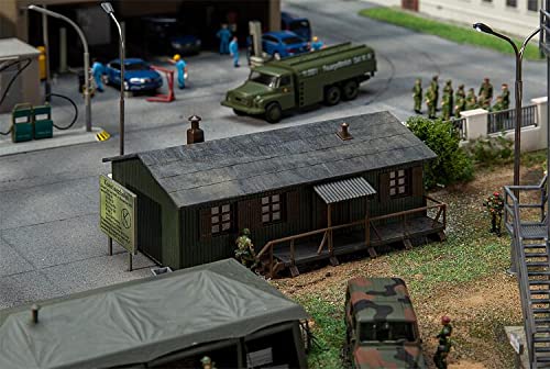 Einstöckige Holzkaserne mithilfe Portiko des Weiteren überdachtem Beobachtung Maße: 111 x 72 x 53 mm