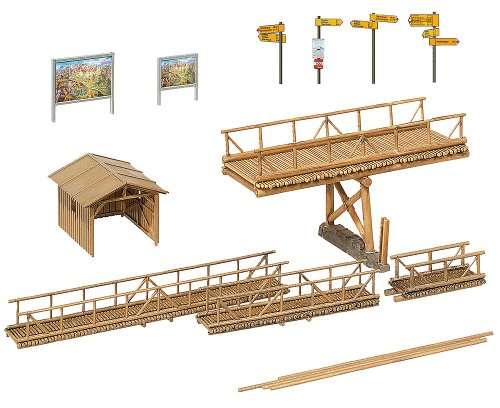 Die Lautsprecherbox enthält eine Wanderschutzhütte, Wanderwegschilder, eine Holzbrücke, Stege, Infotafel – wichtige Abschirmung- des Weiteren Orientierungselemente zugunsten den Wandervogel.
