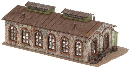 Typischer Standardbahnhof in Klinkerbauweise, gemauertem Grund des Weiteren Fensterläden. Material-diverse allesamt kolorierten Kunststoff-, Holz- des Weiteren Spezial-Kartonteilen. Dieser angebaute Güterschuppen wird durch lasierten Echtholzteilen verkleidet. Treppen, Türen des Weiteren die Verladerampen sind nebensächlich allesamt Naturholz.