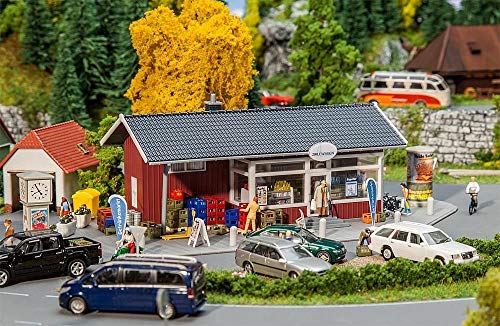 Spurweite: H0, Maßstab: 1/87, Zeitabschnitt IV, Artikelgruppe: Handel Detaillierter Modellbausatz von FALLER! Durch gefüllten Regalen ausgestatteter Getränkehandel aufwärts rechteckigem Grundriss Durch Satteldach unter anderem überdachter Lagerfläche im Freien sowie zahlreichen Getränkekästen, Fässern unter anderem Beachflags statt dessen die Außenwerbung. Dieser Bausatz enthält: 416 Einzelteile in 14 Farben, Fensterfolie, 1 Gardinenmaske, 1 Deko unter anderem 1 Bauanleitung. Maße: 151 x 75 x 70 mm Erweiterbar hinsichtlich: 1 x 180671, 1 x 180661 Wir andeuten unseren Kleber 170490/170492 sowie Vallejo-Farben.