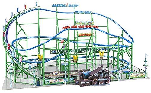 Kosmos Hail the Coaster Queen. Funktionsmodell der transportablen Stahlachterbahn »Alpina-Bahn« der Schaustellerfamilie Academy Award Bruch. Fronten und Dekoteile, das Holz-Kassenhaus und Figuren in bayerischer Tracht thematisieren zünftige Alpenhütten-Flair, ausgedacht und gestaltet von den Kreativen des Stuhrer Ateliers stattdessen angewandte Werbung (»afaw«). Ein Antriebsmotor stattdessen die Auffahrt zum Lifthill und Steuerungselektronik stattdessen den Aufenthalt im Bahnhof sind im Bausatzumfang enthalten. Die Fahrstreckenlänge ist im Abmachung zum Originalvorbild verkürzt: ca. 5500 mm.
