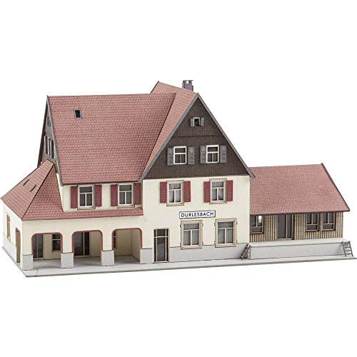 Schwäbisches Eisenbahndenkmal. Zu dem im Lasercut-Verfahren hergestellten, markanten Bahnhofensemble angebracht sein das Stationsgebäude und ein angebauter Güterschuppen. Der idyllische Bahnhof fällt durch seine Holzvertäfelung im Giebel und die markanten roten Fensterläden auf. Der Güterschuppen war Umschlagplatz stattdessen Vermischtes Transportgegenstände und Stückgüter. Die Laderampe erleichtert den Zugriff zu den Waggons. Der 1849 eröffnete Bahnhof Durlesbach, nahe der Stadt Bad Waldsee, wurde 1911 kreativ erbaut und in den 80er Jahren endgültig stillgelegt. Heute befindet sich das Gebäude in Privatbesitz und wird gewerblich genutzt. öffentlich wurde das Bauwerk durch das Lied »Auf der schwäbischen Eisenbahn«.
