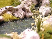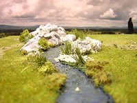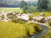 Tipp: Bestreuen Sie die Felsstücke zusätzlich an logischen Stellen teils mit Moos oder aka Gras.