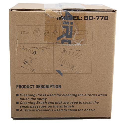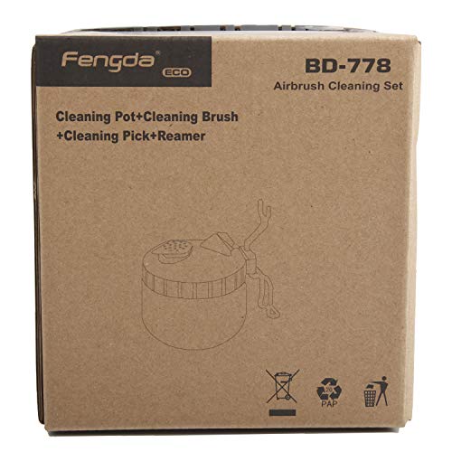 Das Paket beinhaltet: 1 * Reinigungstopf mit Halter 5 * Reinigungsbürsten (unterschiedliche Größe) 5 * Reinigungspickel (unterschiedliche Größe) 1 * Airbrush-Reibahle