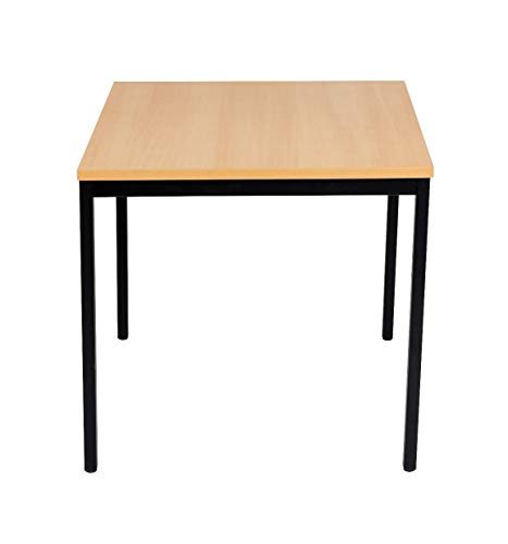 Stabiler, standfester Tisch für den Bürobedarf, als Esstisch u.v.m. Die 25mm starke beschichtete Tischplatte ist belastbar, robust und lässt sich super reinigen