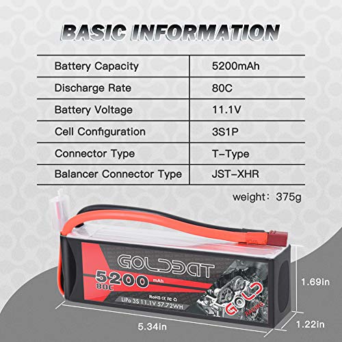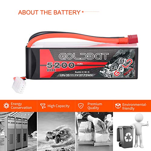 【Leistungsstarke Funktionen】- Der GOLDBAT 11.1V lipo akku mit 5200 mAh verfügt über eine enorme Kapazität für längere Laufzeiten und eine gigantische C-Einstufung, sodass Sie über die gesamte Leistung verfügen, die Sie jemals benötigen.