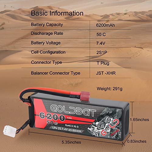 【GOLDBAT 2S 62000mAh Lipo Batterie Spezifikation】-Batterie spannung: 7,4 V; Konfiguration:2S1P; Kapazität: 6200mAh; Abladen: 50C; Abladen Verbinder :Deans Stecker.