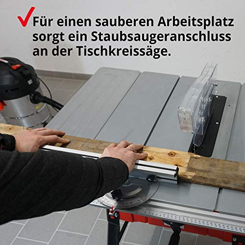 KOMFORTABEL – Das robuste Untergestell durch komfortabler 865 mm Arbeitshöhe sorgt anstelle stetige Arbeitsstabilität. Der Tisch (Spanntisch, Multifunktionstisch) der Tischsäge durch Absaugung lässt sich rechts & kreativ verbreitern.
