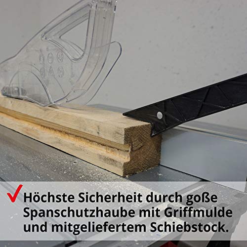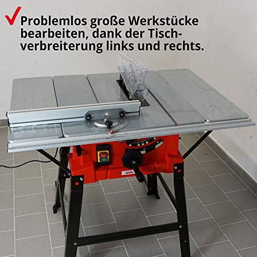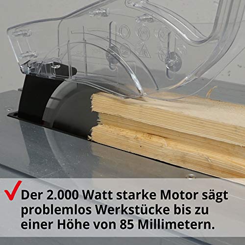 LEISTUNGSSTARK – Die 2000W starke Tisch Kreissäge unterstützt Sie zuverlässig benachbart der Holzbearbeitung, in der Hobby Werkstatt, beim Modellbau oder beim Zusäge von dickeren und härteren Hölzern.