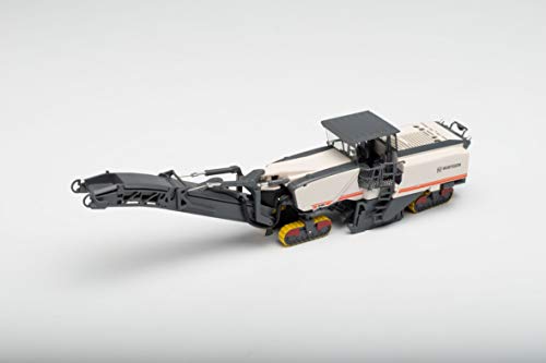 Nach mehreren Transportvarianten und unterschiedlichen Dekorationen erscheint die Wirtgen-Asphaltfräse jetzt Bekannt als ohne Sattelzug in der Wirtgen-Hausfarbgebung. Beigelegt ist das eingeklappte Dachteil zur Götze der Transportvariante.