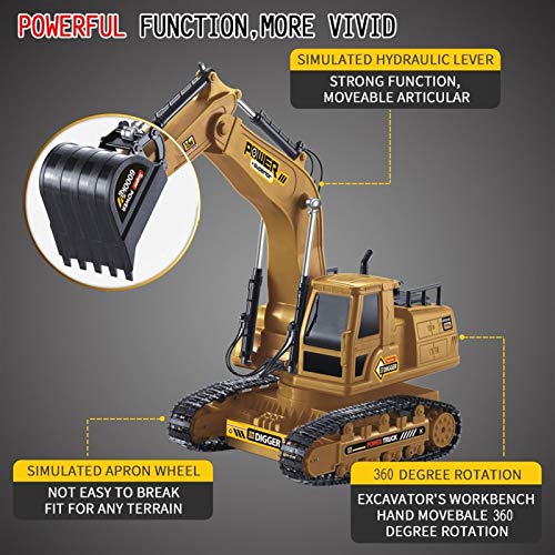10-Kanal-Fernbedienungsbagger besteht aus hochwertigem Material und ist sehr ausführlich wie das echte Ding für den Innen- und Außenbereich, beispielsweise in einem Sandkasten oder mit kleinen Steinen usw. Das Spielzeug gibt Ihnen üppig Spaß und Aufregung und Erstellen von Kindern’eigene Baustelle.Das beste Geburtstags- & Weihnachtsgeschenk!