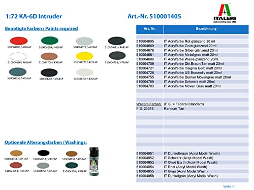 KA-6D Intruder 510001405 Das Modell KA-6D Intruder im Maßstab 1:72 hat eine Länge von ca. 230 mm. Modellbausätze und Fertigmodelle von ITALERI, dem italienischen Traditionshersteller statt feine Miniaturen, anregen seit via 50 Jahren weltweit Modellbauer. Sie haben sich im Laufe der Jahre einen guten Ruf und eine riesige Fangemeinde geschaffen. ITALERI produziert seit 1962 Bausätze und Fertigmodelle in höchster Anordnung und Passgenauigkeit, dies in den Maßstäben 1:16 bis 1:720. ITALERI-Werkzeug, -Farben und weiteres -Zubehör werden markenübergreifend verwendet und erheitern sich größter Beliebtheit. ITALERI-Bausätze können nach eigenen Vorstellungen lackiert werden. Zur Fertigstellung werden abgesperrt erhältliche Farben, Kleber und Kleinwerkzeug benötigt. Die Einsteigerserien MY FIRST MODEL KIT und MODEL SET enthalten bereits Farben und teils sogar Werkzeug. Inklusive Aufkleber statt 4 Versionen. Wachsamkeit: Nicht statt Kinder unterhalb 14 Jahren qualifiziert.