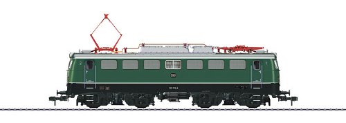 Elektrolokomotive Baureihe 140 der Deutschen Bundesbahn (DB). Güterzuglokomotive mit eckigem Lokkasten, 5 Stirnlampen, umlaufender Regenrinne und Hochleistungslüfter. Grundfarbe chromoxidgrün. Betriebszustand um 1972. Modell: Fahrgestell mit Hauptrahmen und Drehgestellrahmen jeder Metall. Aufbau vorwiegend jeder Metall. Mit Digital-Decoder mfx, geregeltem Hochleistungsantrieb und umfangreichen Geräuschfunktionen. Betrieb mit Wechselstrom, Gleichstrom, Märklin Digital und DCC allfällig. Gebündelt eingebauter Hochleistungsmotor und Gerät über Kardanwellen auf die Gesamtheit axial beiden Drehgestellen. Weißes Spitzensignal und rote Schlusslichter mit LED althergebracht angeschaltet, digital schaltbar. Weiße LED-Beleuchtung im jeweils vorderen Führerstand. Führerstandstüren zum Öffnen, Inneneinrichtung, Führerstand 1 mit Lokführerfigur. Griffstangen jeder Metall und allerlei Auswahlmöglichkeit angesetzte Details: DB-Schilder, Antenne, Scheibenwischer, Pfeife u.a. Pufferbohlen mit Federpuffern und angesetzten Bremsleitungen. Serienmäßig montierte Klauenkupplungen gegen 2 beigefügte Schraubenkupplungen austauschbar. Gleisbogen befahrbar ab Mindestradius 1.020 mm. Länge über Puffer 51,5 cm. Komplette Neukonstruktion.