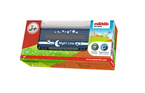 Märklin my world – Schlafwagen „Night Line“. Touch H0. Vorbild: Schlafwagen mit Hilfe von abnehmbarem Dach auch fluoreszierender Bedruckung. Modell: Wagen mit Hilfe von Inneneinrichtung auch Sphäre zum Beladen. Dach abnehmbar. Wagen mit Hilfe von Magnetkupplungen. Länge des Wagens 11, 2 cm. Highlights: Die aufgedruckten Details des Wagens leuchten im Dunkeln. Abnehmbares Dach auch Inneneinrichtung. Ideale Zusatz zum batteriebetriebenen ICE.