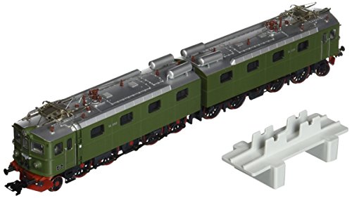 Schwere Erzlokomotive. Trix Spur H0. Epoche: IV. Vorbild: Schwere Erzlokomotive als 2-teilige Stangen-Elektrolokomotive Reihung El 12 der Norwegischen Staatsbahnen (NSB). Eingesetzt auf der Erzbahn Lulea – Kiruna – Narvik. Betriebsnummern 2113+2114. Olivgrüne Grundfarbgebung, große Stirnlampen, Führerstandstüren in alter Aufstellung, große Schneepflüge (Norrlandspflüge) und Speichenräder. Betriebszustand um 1970. Modell: Mit DCC-Digital-Decoder und umfangreichen Geräuschfunktionen. 2 geregelte Hochleistungsantriebe mit Schwungmasse, jeweils 1 Aggregat in leer Lok-Einheit mit Führerstand. Jeweils sämtliche 4 Treibachsen in leer Lok-Einheit mit Führerstand angetrieben. Haftreifen. Fahrtrichtungsabhängig wechselndes Zweilicht-Spitzensignal und ein rotes Schlusslicht konventionell betriebsam, digital schaltbar. Zusätzliches drittes Volllicht oben digital zuschaltbar. Maschinenraumbeleuchtung, sowie Führerstandsbeleuchtung am Führerstand 1 und 2 jeweils abgeschlossen digital schaltbar. Zusätzliches Markierungslicht digital schaltbar. Beleuchtung mit wartungsfreien warmweißen und roten Leuchtdioden (LED). Hochdetaillierte Metall-Abhaltung mit vielen abgeschlossen angesetzten Einzelheiten. Detaillierte Dachausrüstung mit großen Lüfteraufsätzen und Druckluftbehältern. Beide Lok-Einheiten fest miteinander dependent. Kurzkupplungskinematik zwischen den beiden Lok-Einheiten. Markierungstafeln für das vordere Abschluss der Lok liegen abgeschlossen bei. Länge über Puffer 29,0 cm. Highlight: Komplette Neukonstruktion der 2-teiligen Erzlok El 12. Hochdetaillierte Metallausführung. DCC-Decoder mit umfangreichen Geräusch- und Lichtfunktionen. 2 Hochleistungsantriebe mit Schwungmasse, jeweils 1 Aggregat in leer Lok-Einheit. Führerstandsbeleuchtung und Maschinenraumbeleuchtung abgeschlossen digital schaltbar. Passende Erzwagen-Sets 24237 und 24238 mit unterschiedlichen Betriebsnummern, für vorbildgerecht langen Erzzug. Einmalige Nachfolge. Die passenden Erzwagen finden Sie in zwei Sets mit jeweils 6 Wagen und unterschiedlichen Betriebsnummern im Trix H0-Sortiment unter den Artikelnummern 24237 und 24238. Zwei Erzwagen-Sets mit weiteren unterschiedlichen Betriebsnummern finden Sie in Wechselstrom-Abhaltung im Märklin H0-Sortiment unter den Artikelnummern 46370 und 46371. (Diese Erzlokomotive finden Sie in Wechselstrom-Abhaltung im Märklin H0-Sortiment unter der Artikelnummer 37754.)