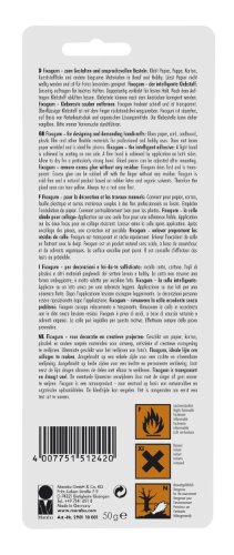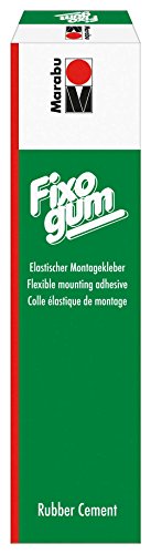 Bei Marabu Fixogum handelt es sich um einen säurefreien, elastischen Klebstoff auf der Basis von Naturkautschuk und organischen Lösemitteln. Er eignet sich besonders für den grafischen Bereich und Hobbyanwendungen zum wieder ablösbaren Verkleben oder für festen Halt. Fixogum klebt Papier, Pappe, Kunststofffolie und andere biegsame Materialien. Die verklebten Teile verziehen sich nicht, Papier wird nicht wellig, sodass sich der Kleber besonders für Fotos eignet. Überstehende Klebstoffränder lassen sich einfach abrubbeln. Der Klebstoff ist nicht alterungsbeständig. Sie erhalten eine Tube mit 50 g Fixogum.