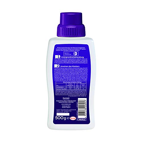 Praktischer Lieferumfang – Metylan Raufaser Fertigkleister Konzentrat, klumpenfreier Tapetenkleister für Raufasertapeten mit hoher Klebkraft, milchig-weiß, trocknet transparent, 1x500g (bis 26m²)