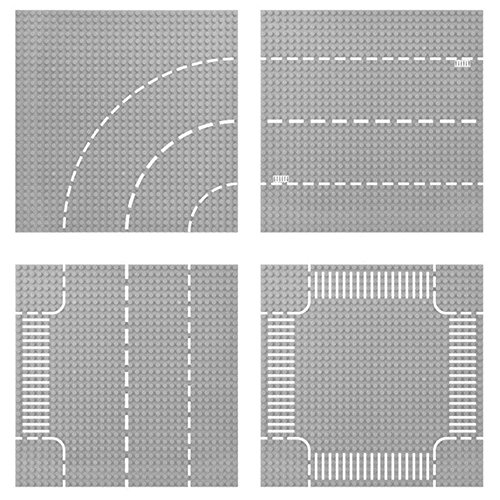 4 STÜCK CITY Straßen Grundplatten,Gerade Straße / Kreuzung / Kurve / T-Kreuzung