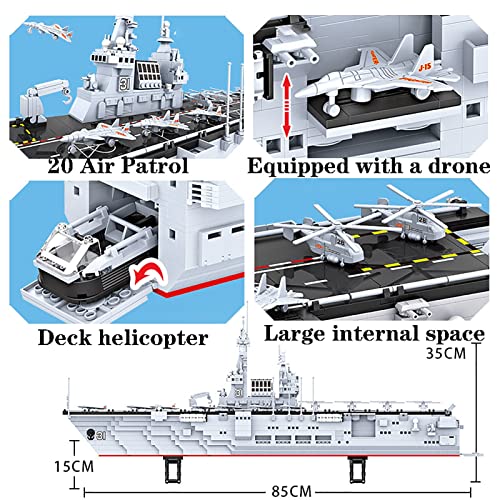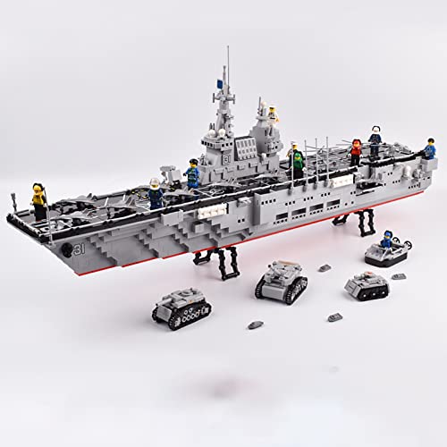 Modulares amphibisches Angriffsschiff-Flugzeugträger-Militärmodell-Bausteinmodell, Produktgröße: 85 * 15 * 35 cm, 2368 Bereich.