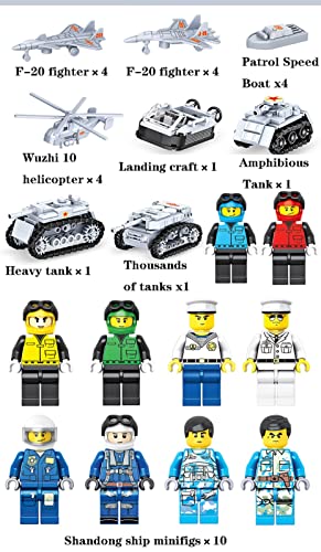 Eigenschaften: Ausgestattet mit Flugzeugstartplattform, großem Innenraum, Deckhubschrauber, F-20 Fighter × 4, F-20 Fighter × 4, Patrol Speedboat × 4, Wuzhi 10 Helicopter × 4, Landing Craft × 1, Amphibienpanzer × 1, Schwerer Panzer×1, Panzer-Tausend-Kampffahrzeug×1, Shandong-Schiffs-Minifigur×10