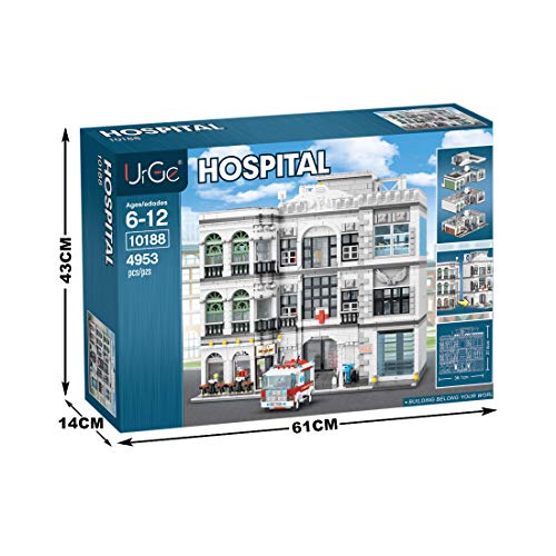 PEXL Haus Bausteine Bausatz, Stadtkrankenhaus Modular Architektur Modell, 4953 Klemmbausteine Kompatibel mit Lego