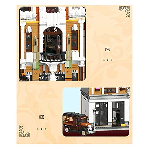 Architektur-Set: Dieses Baukasten-Architektur-Set ist ein Stadtpostamt, ausgestattet mit einem orangefarbenen Postzustellwagen und einem Briefkasten an der Tür