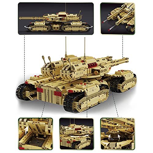 RC Tank Building Blocks, 20011, 2.4Ghz Remote/APP Control Rechargeable Military Mammoth Tank Model Kits for Kids Gifts, Compatible with legos (3296+ Pcs)