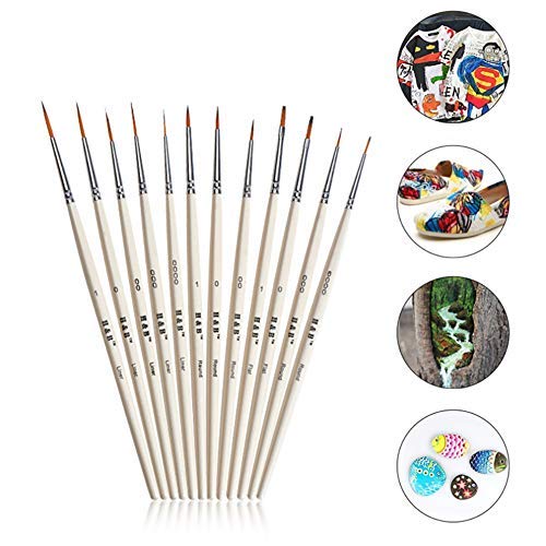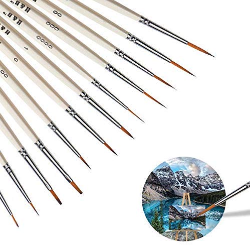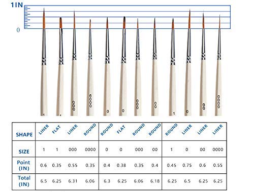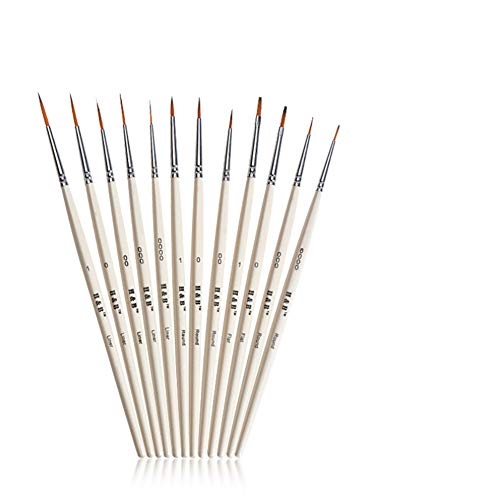 12 Detailpinsel-Set in unterschiedlicher Form und Größe: Liner (1,0,00,000,0000), Rund (1,0,00,000,0000), Flach (1,0). Ermöglicht es Ihnen, feine Details und Kunst zu malen, um enge, kleine Flecken oder winzige Punkte zu erreichen.