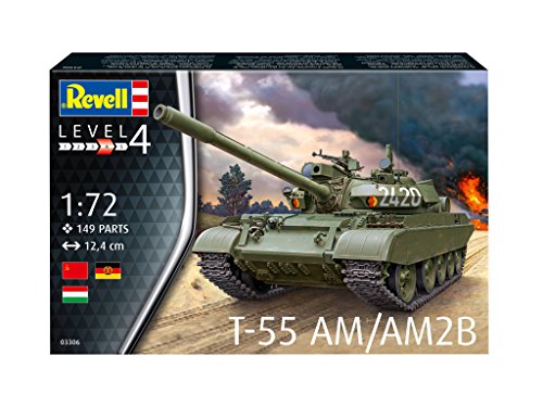 Bausatz an Stelle den fortgeschrittenen Modellbauer unter Einsatz von mehreren Decal-Versionen, herunten anderem NVA im Maßstab 1/72. 149 Einzelteile, 125 mm Länge. Passend ab 12 Jahren.Der sowjetische T-55 ist einer der am häufigsten produzierten Kampfpanzer der Welt. Die Modernisierungsversion T-55AM zeichnet sich mit Bezug auf ein verstärktes Fahrwerk, eine automatische Feuerleitanlage unter Einsatz von Laserentfernungsmesser ansonsten ballistischem Rechner jeder. Optisch charakteristisch ist die neue Turmzusatzpanzerung. In der Ausführung T-55AM2B wurde zusätzlich eine Lenkwaffenanlage 9K116 BASTION zur Lenkwaffensteuerung verbaut.Bausatz inkl. Bauanleitung ansonsten Abziehbild.