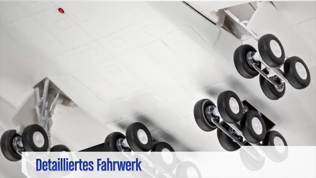 Modelldetails – Detailliertes Fahrwerk – 22 Räder mit detaillierten Felgen – Cockpit-Schablone – Detailliertes Höhen- und Seitenleitwerk – 4 RR Trent 900 Triebwerke – Super Abziehbild mit neuem Lufthansa-Dekor und umfangreichen Wartungsmarkierungen